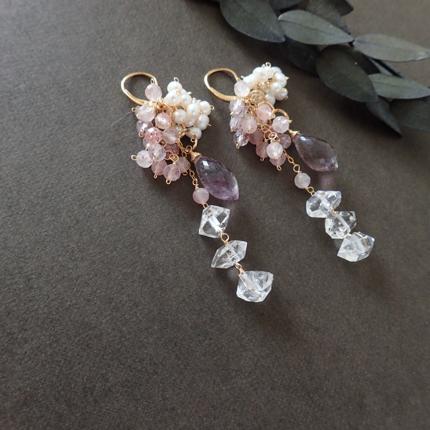 あえてインクルージョン強めのハーキマーとピンクエピドートで